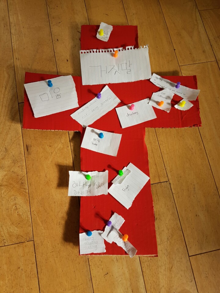 하나님 제 안에 이런 죄가 있어요. 십자가에 자신의 죄를 고백하며....